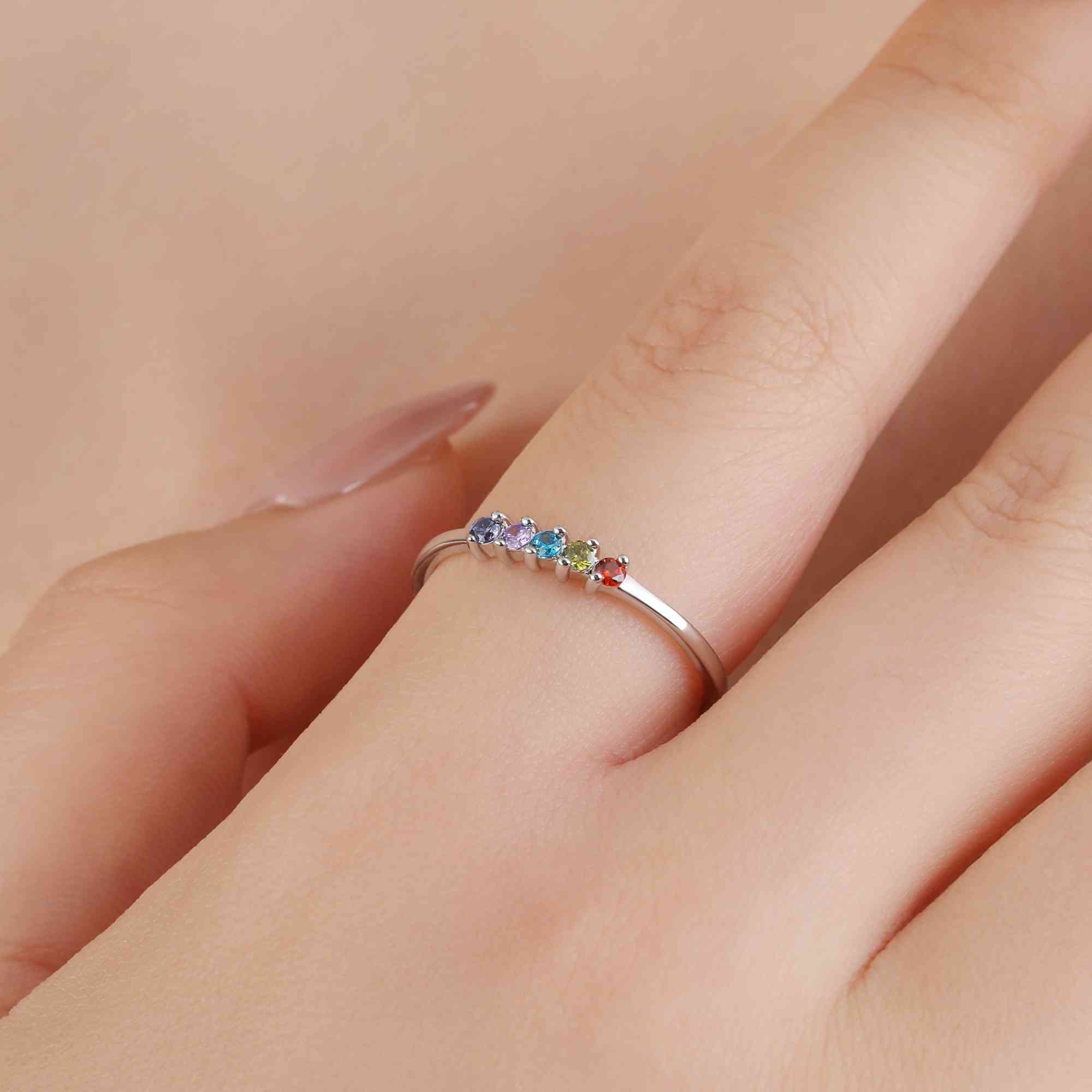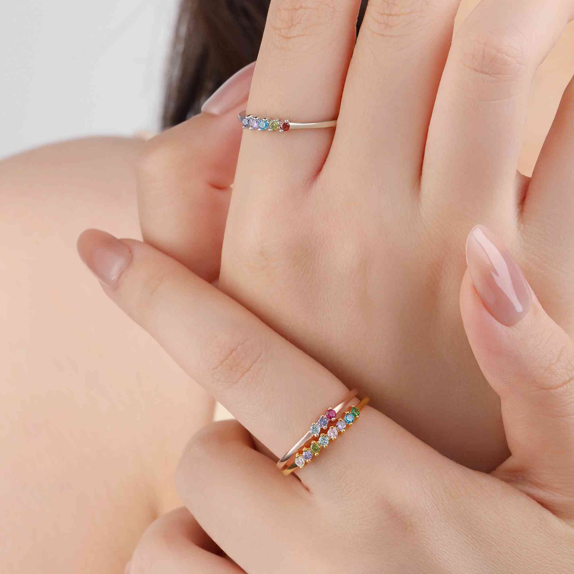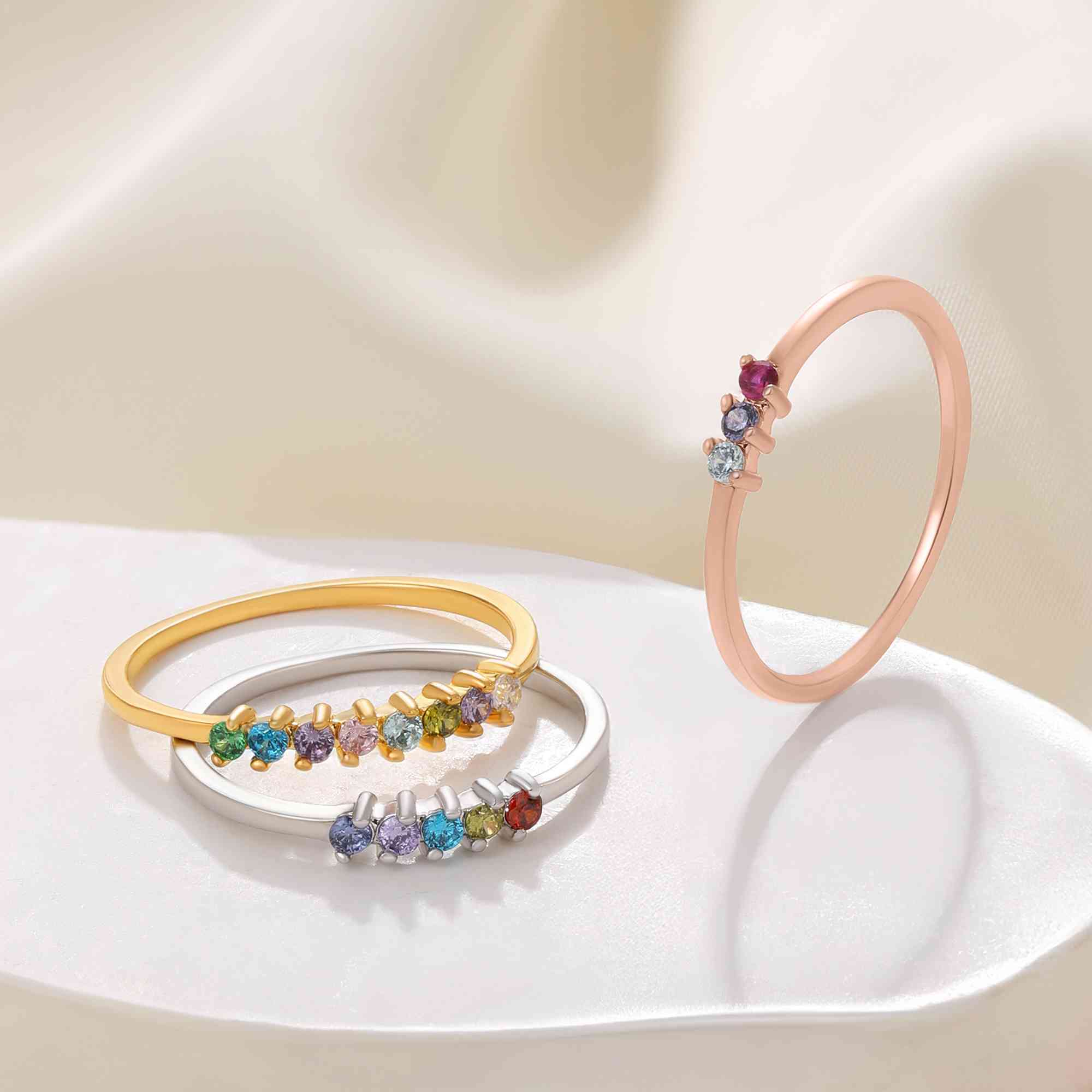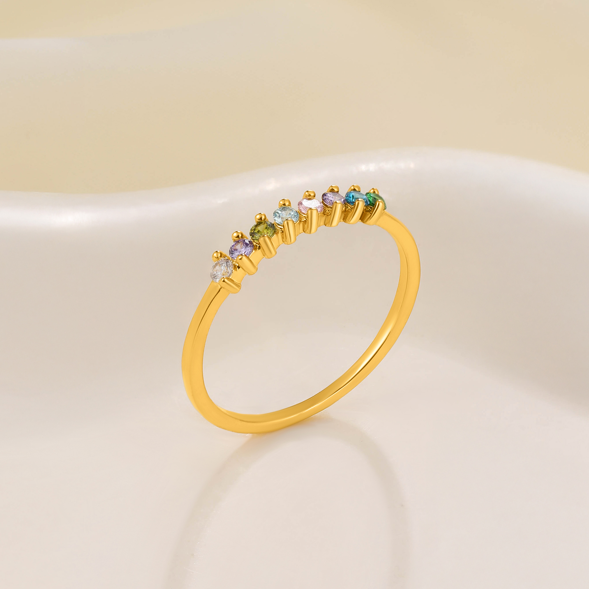 nique Design - This charming mini birthstone ring features the option to personalize it with 1-8 birthstones, representing family members or loved ones. Its elegant design allows for a stackable style, making it a versatile addition to any jewelry collection.