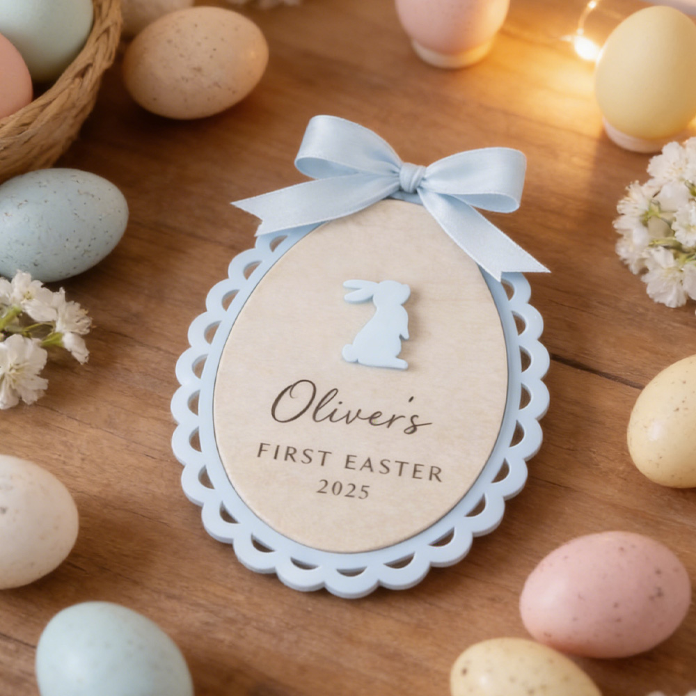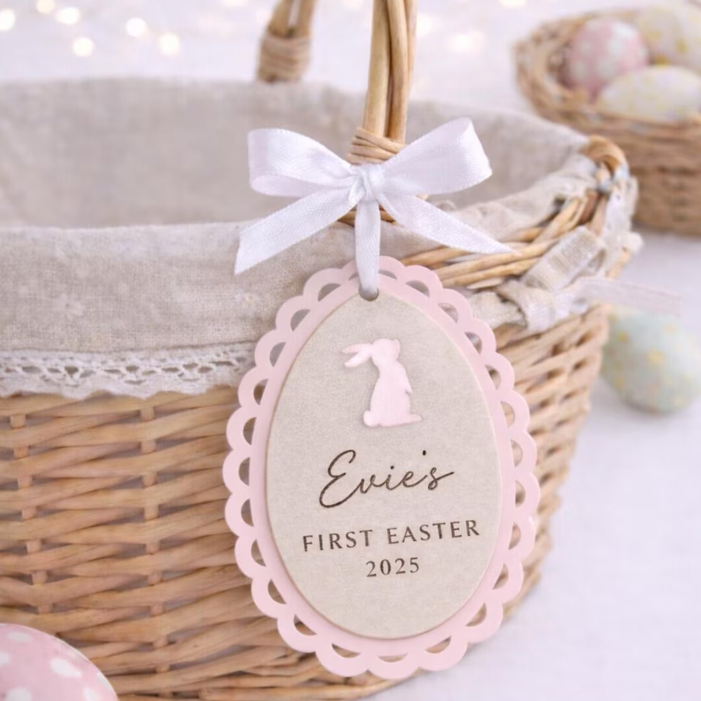 "First Easter" Celebration – Each tag is engraved with a child’s name and the special year of their first Easter, creating a meaningful keepsake that marks a milestone moment. The elegant script adds a touch of grace to this cherished memory.